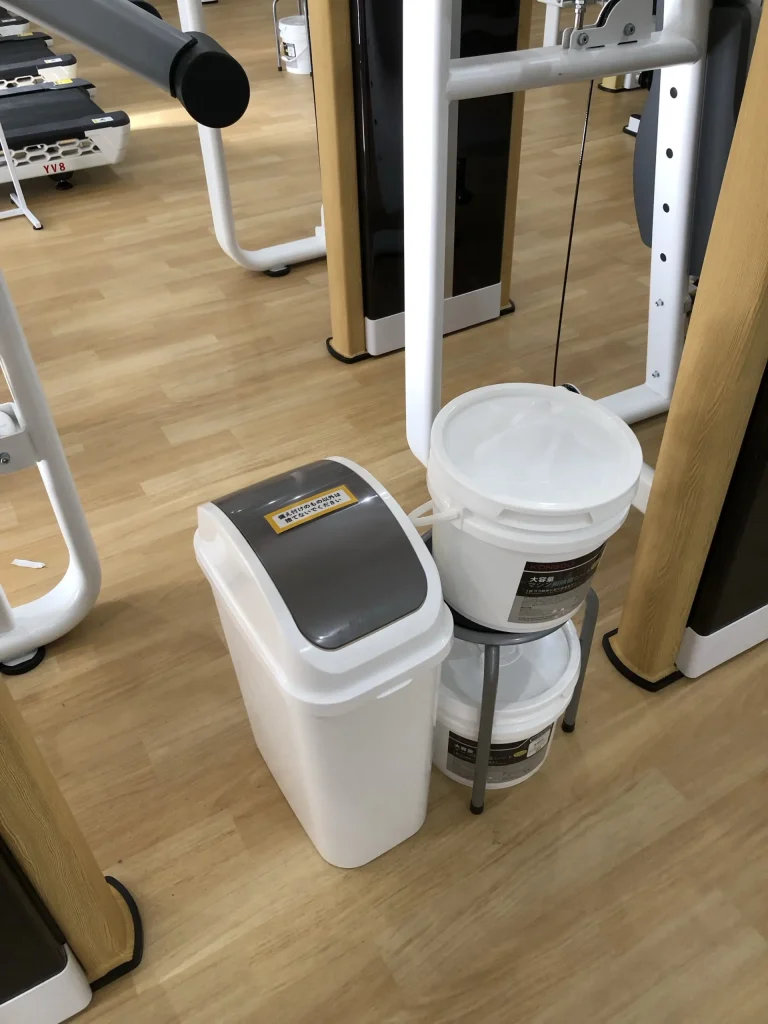 写真のように、全店舗ジム内にはいくつもの除菌シートが設置されているので、すべてが空のパターンは多くはないでしょうし。