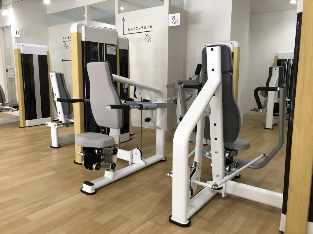 ちょこざっぷはジムゆえ筋トレマシンや有酸素運動マシンが利用できますが、なんとセルフエステマシンも自由に使うことができます。(もちろん男女ともに)