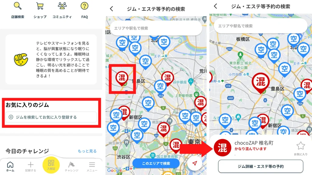 ですが、ちょこざっぷは全店舗アプリで事前にジム内の混み具合を確認できるのもメリット。なので基本的には空いてる時間帯をチョイスすれば快適に利用できます。