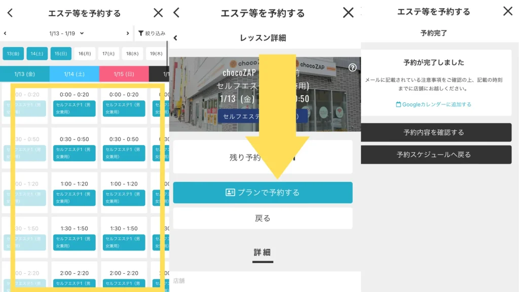事前にちょこざっぷアプリで使いたい日時を予約しておくだけでOK↓