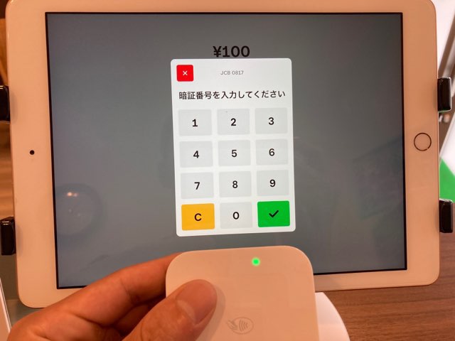 また、今までは決済する際は手入力によるサインが必要でしたが、Square Terminalでは暗証番号入力に対応しております。