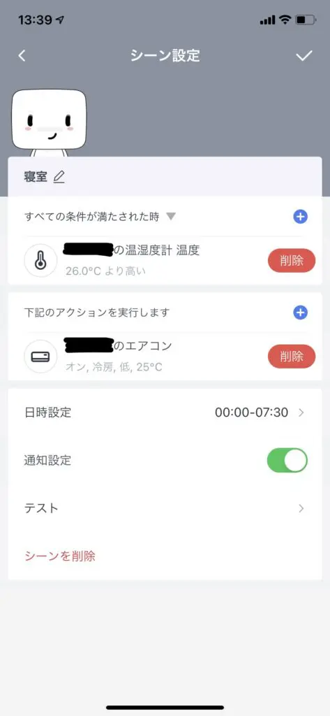 という訳で、アプリからエアコンを自動操作する設定を試してみました。