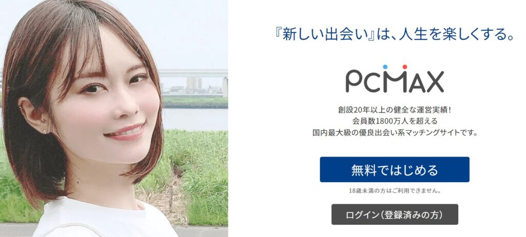 PCMAXは、2002年から運営されている日本最大級の出会い系サイトです。また、会員数も1400万人を超える老舗のサイトです。