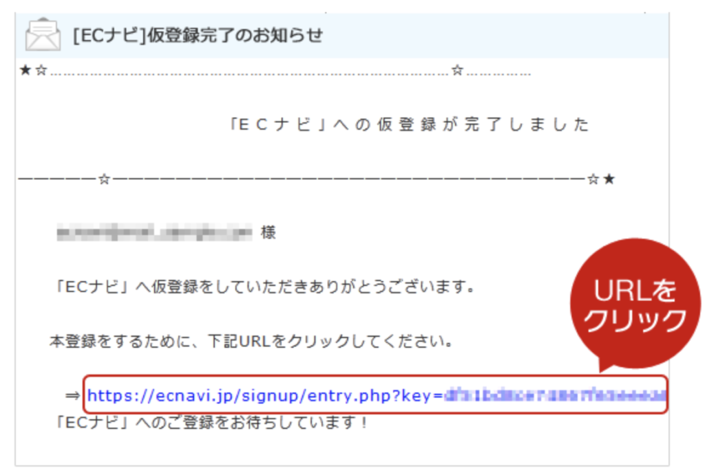 入力したメールアドレスに「仮登録完了」というメールが届くので、メール中のURLをクリックして本登録に進みます。