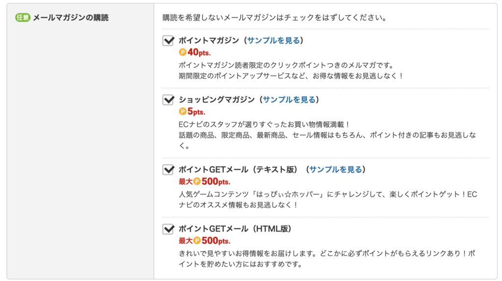 メルマガはクリックポイントがついているものが多いですが、けっこう頻繁に届きます。