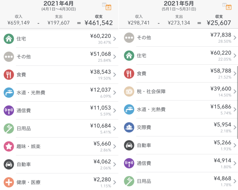 4月に比べると5月は食費が際立って高くなっていることがわかります