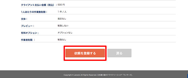 確認画面が出てくるので、問題なければ「依頼を登録する」を選択します。