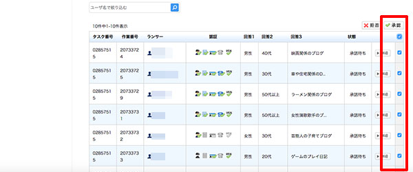 アンケートの回答に問題がなかったら、「承認」を選択することで、回答者を決定します。