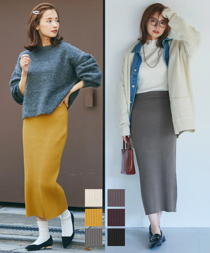 リブだけどピッタリしすぎない!はき心地の良さはピカイチの「ニットスカートシリーズ」。ニットスカートの中でも”Iラインのリブニットスカート”は、すらっと見えて嬉しいとの声も多数見受けられます。