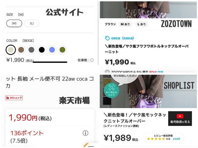 コカの商品をどこで購入すれば、1番安く買えるかを徹底調査しました。今回はゾゾタウン、SHOPLIST、楽天市場、公式サイトで調査を実施。その結果、全てのサイトで購入可能ですが価格は大差ありませんでした。