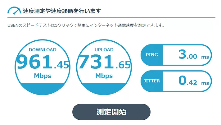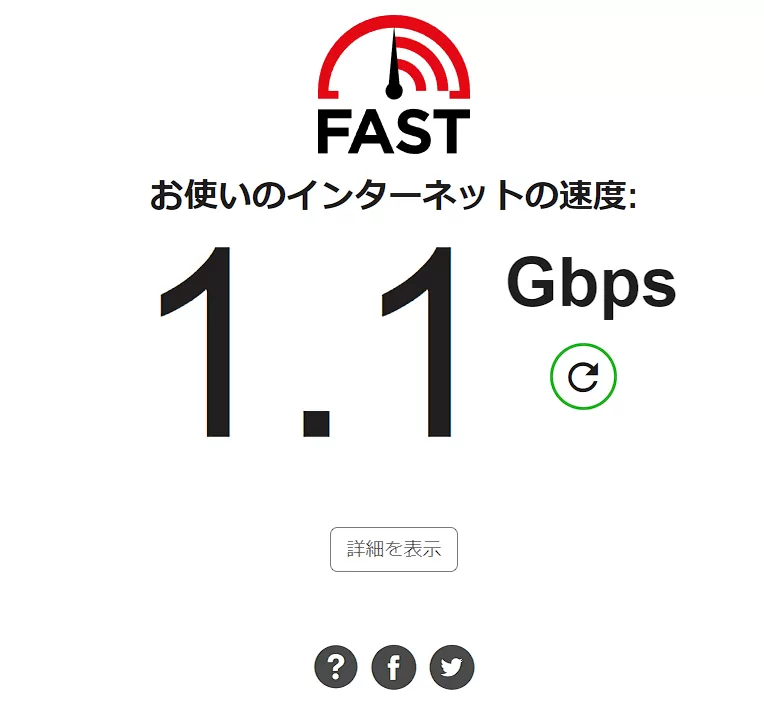 固定回線も日時を変えて何度か計測しましたが、1Gbpsで変化はありませんでした。