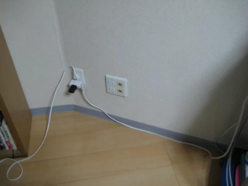 リビングの玄関から近い方のコンセントを外してみると、先ほどのケーブルが確認できました。