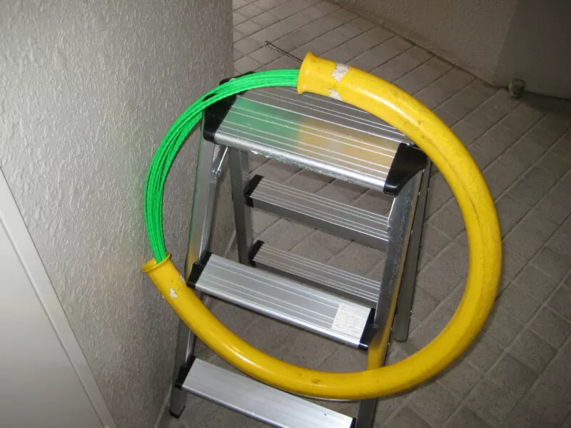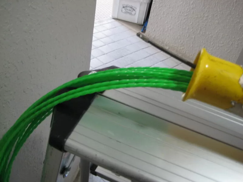このケーブルをメーターBOXの住戸内へ続く配管へ「押し込んで」いきます。