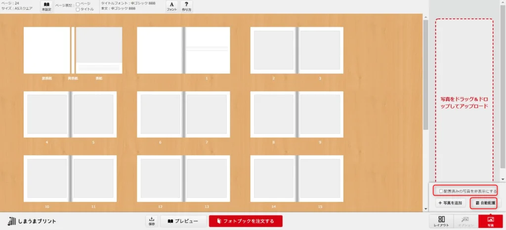 事前準備が完了した後は、しまうまプリントフォトブックで作成します。