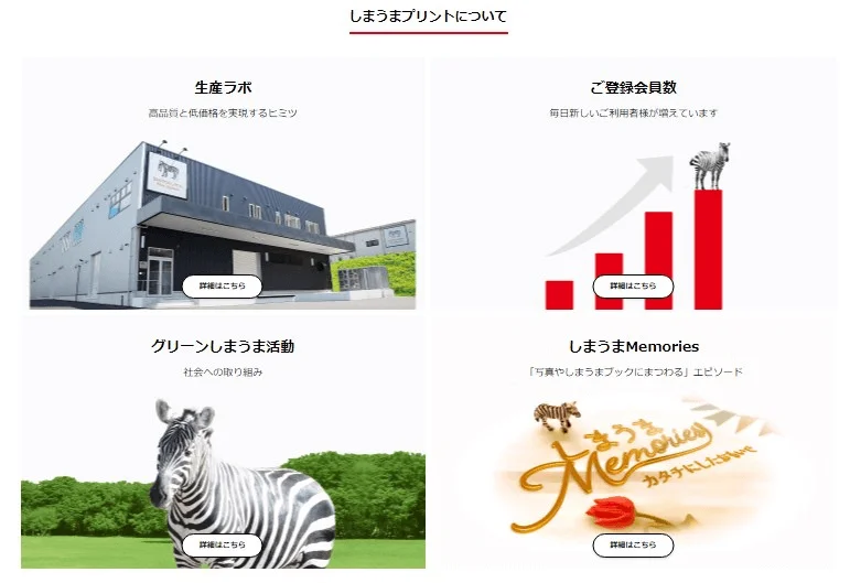 お客様の目線でさらに手軽な金額と簡単にご利用いただけるサービスをご提供できるよう目指しています。しまうまプリント公式HP