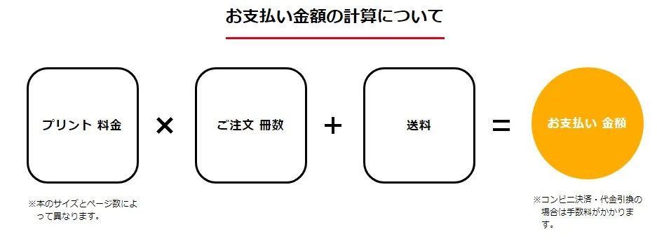 合計金額のイメージは、選択するプリント料金、冊数、送料によって計算されます。