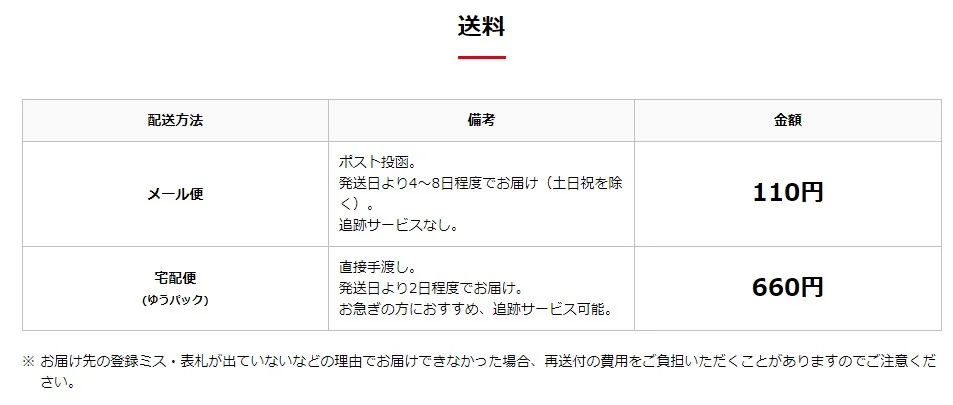 | 送付方法 | ゆうメール(ポスト投函) |