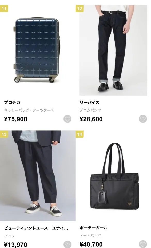 各ジャンル、そのときどきの人気アイテムがランキングとして掲載されています。