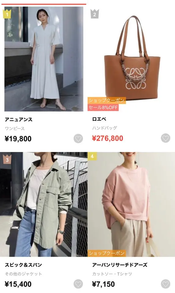 2000以上のブランド、850を超えるショップが出品しているため、多様なブランドの中からお気に入りの洋服やアクセサリーを探せます。