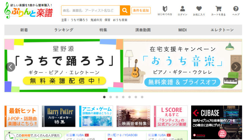 そんな時におすすめなのが、ネットで楽譜が買える「ぷりんと楽譜」です。