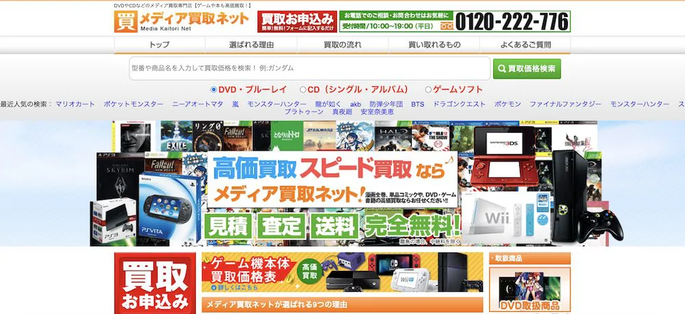 ゲームやCD・DVD・マンガをまとめて売りたい方にオススメしたい買取店が、メディア買取ネットです。