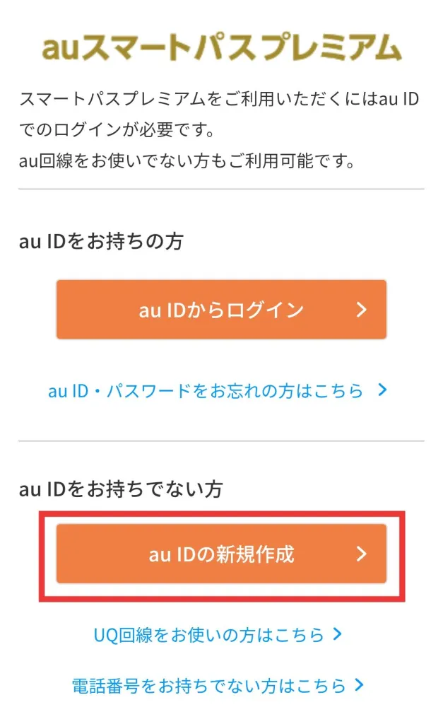 ※auIDを持っていない場合はまず「auIDの新規作成」からIDを取得しましょう。