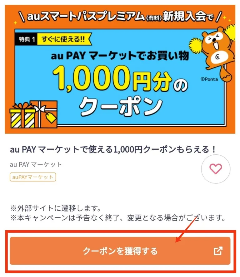 auPAYマーケットで使える1,000円OFFクーポンです。