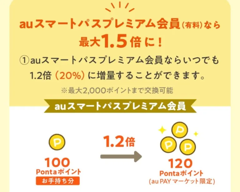 Pontaポイントを交換するだけで最大1.5倍になり、増量したポイントはauPAYマーケットで使うことができます。