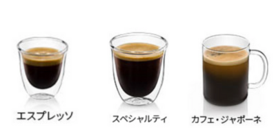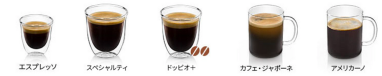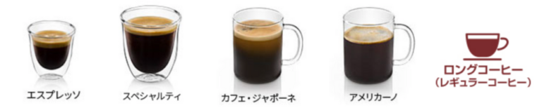 デロンギの全自動コーヒーマシンで作れるコーヒーメニューは次の6つ。