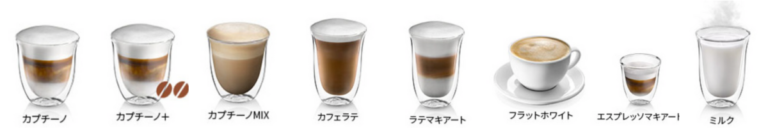 ラテクレマ™システムで作ることができるラテメニュー(ミルクメニュー)は次の8つ。