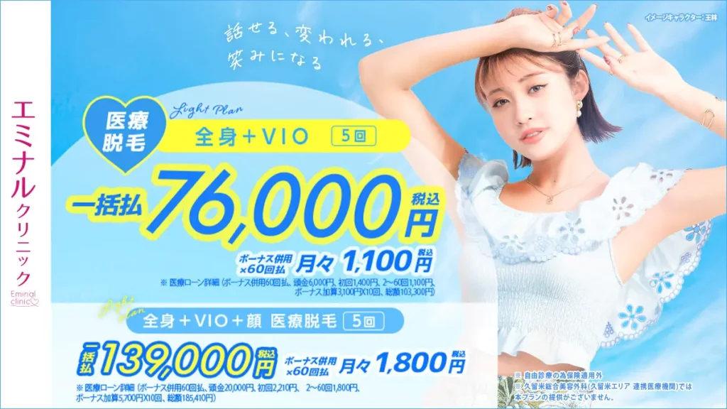 全身脱毛しやすいサービスが揃った「エミナルクリニック」。