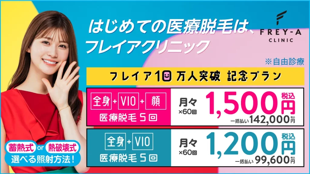 | 【全身脱毛+VIO+顔】5回:148,000円 (期間限定価格) | ||