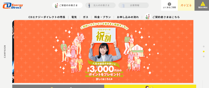 光熱費を安くするために、ガスと同時に電気の切り替えも検討している人は、CDエナジーダイレクトがおすすめです。