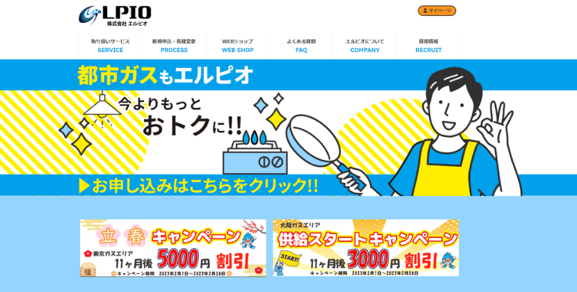10月31日までの申し込みで8,000円割引エルピオ都市ガスの公式サイトをみる