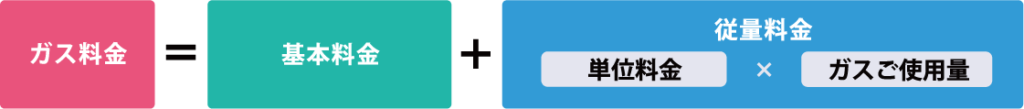 ガス料金は、月ごとの使用量に応じて支払う「基本料金」と1m³あたりに支払う「従量料金」を合計した金額です。 「基本料金」と「単位料金」は月々のガス使用量により変動します。