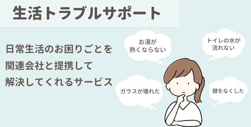 また、ガスだけではなく日常生活のトラブルに対して、出張して対応してくれる「生活トラブルサポート」があるガス会社もあります。 ガス器具の故障や水道・電気まわりのトラブルなど、困った時にすぐにガス会社に相談できるので、ご高齢の方や一人暮らしの方におすすめです。