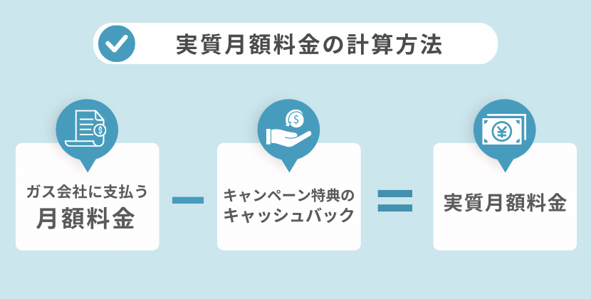 通常のガス料金も安い「エルピオ都市ガス」ですが、キャンペーンを利用することで「実質月額料金」はさらに安くなります。