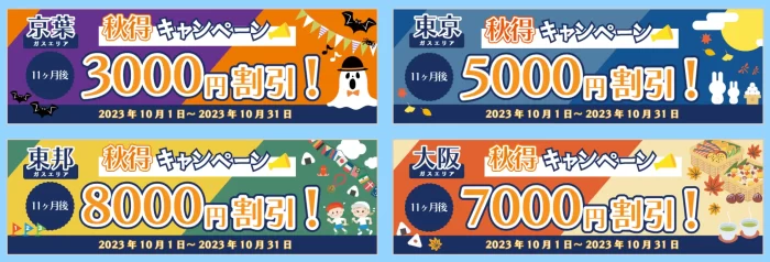 一度切り替えるだけで何年もガス料金が安くなるので、エルピオ都市ガスに切り替える価値は大きいでしょう。 さらに、東邦ガスエリアにお住まいの方限定で、2023年10月31日までの申し込みで供給開始11ヶ月後のガス料金から8,000円が割引になるキャンペーンを実施中!